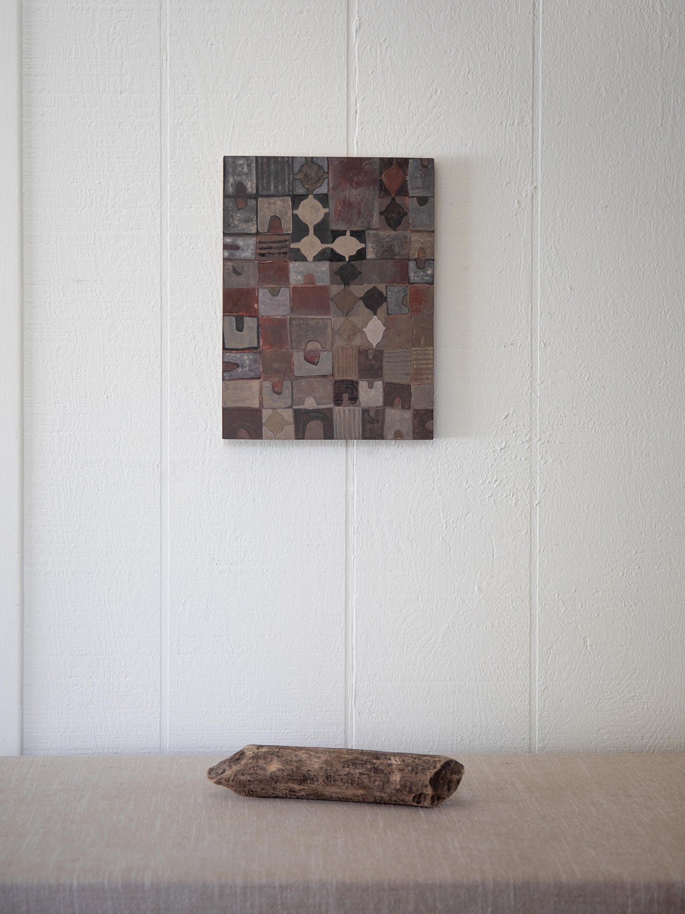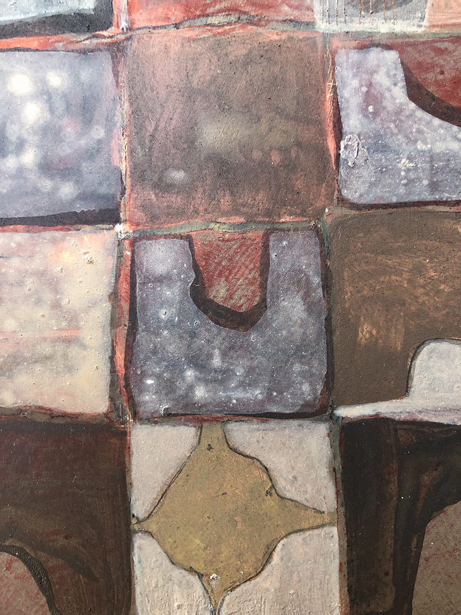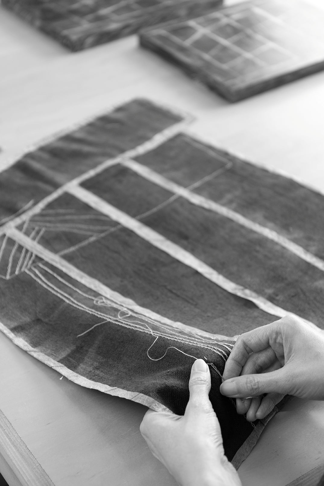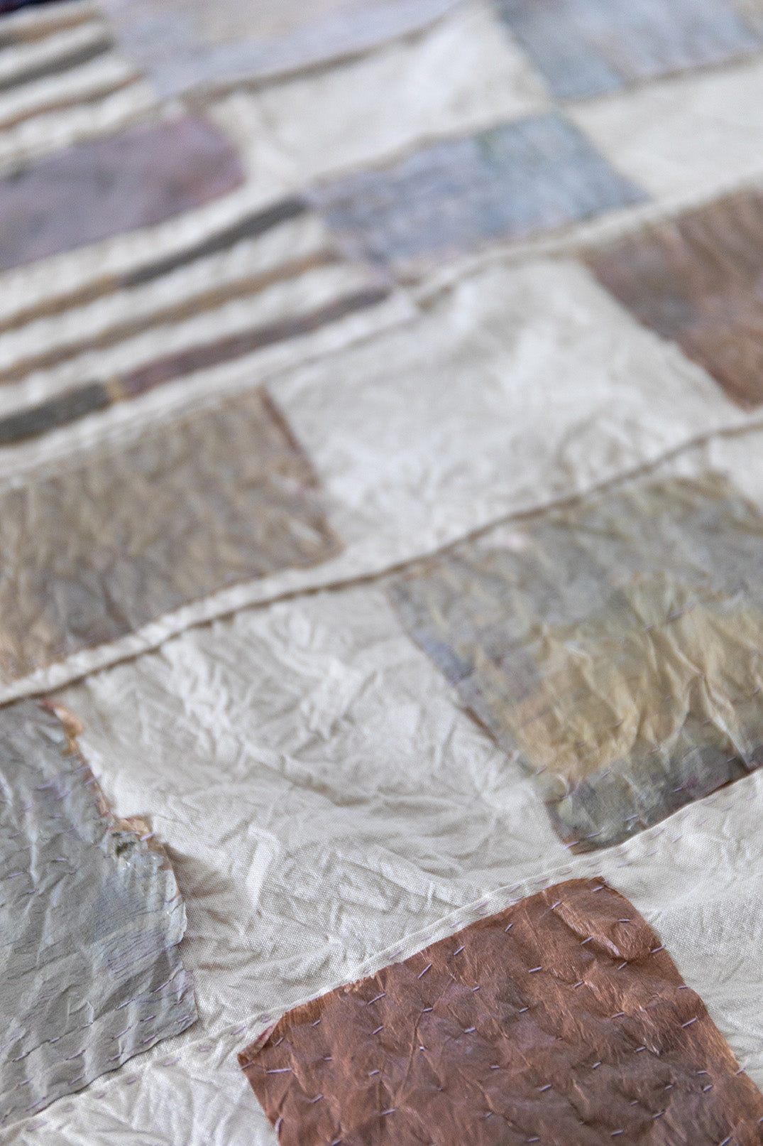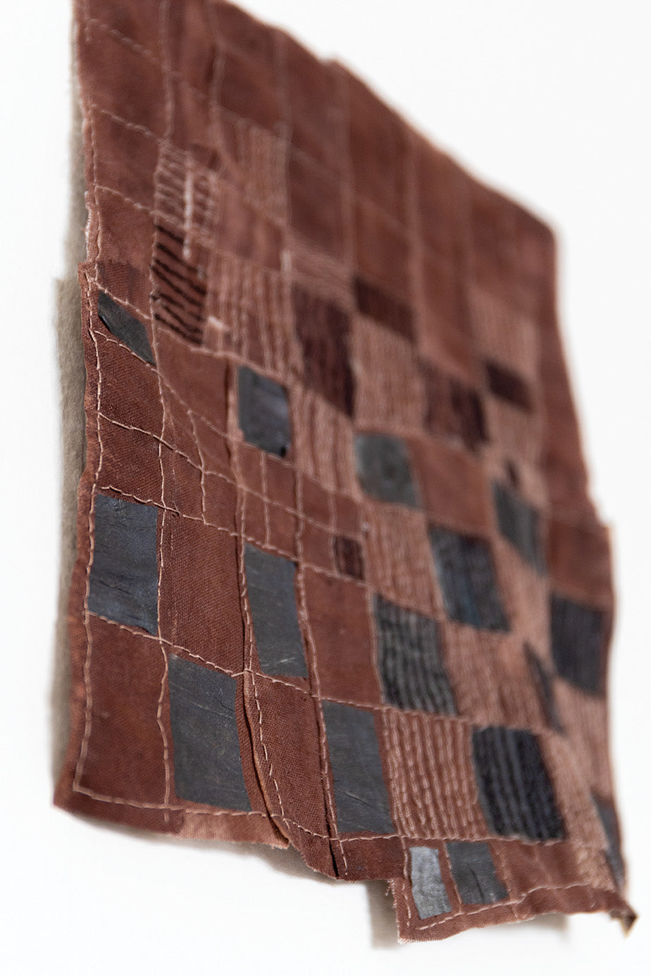 My work explores shapes and forms that evoke an archaic and universal visual vocabulary. I find solace in the studio. The physical and repetitive acts of stitching and mark making is a balm of sorts: reminding me of the timeless aspects of life. The quiet, the natural, the neutral. Within these abstract landscapes I find comfort, and my hope is that others might find their own version of reassurance through the work.